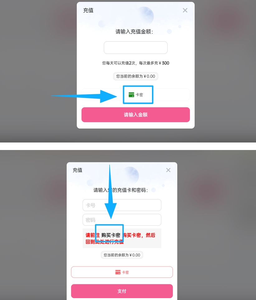 卡密充值推荐使用站内的微信支付。